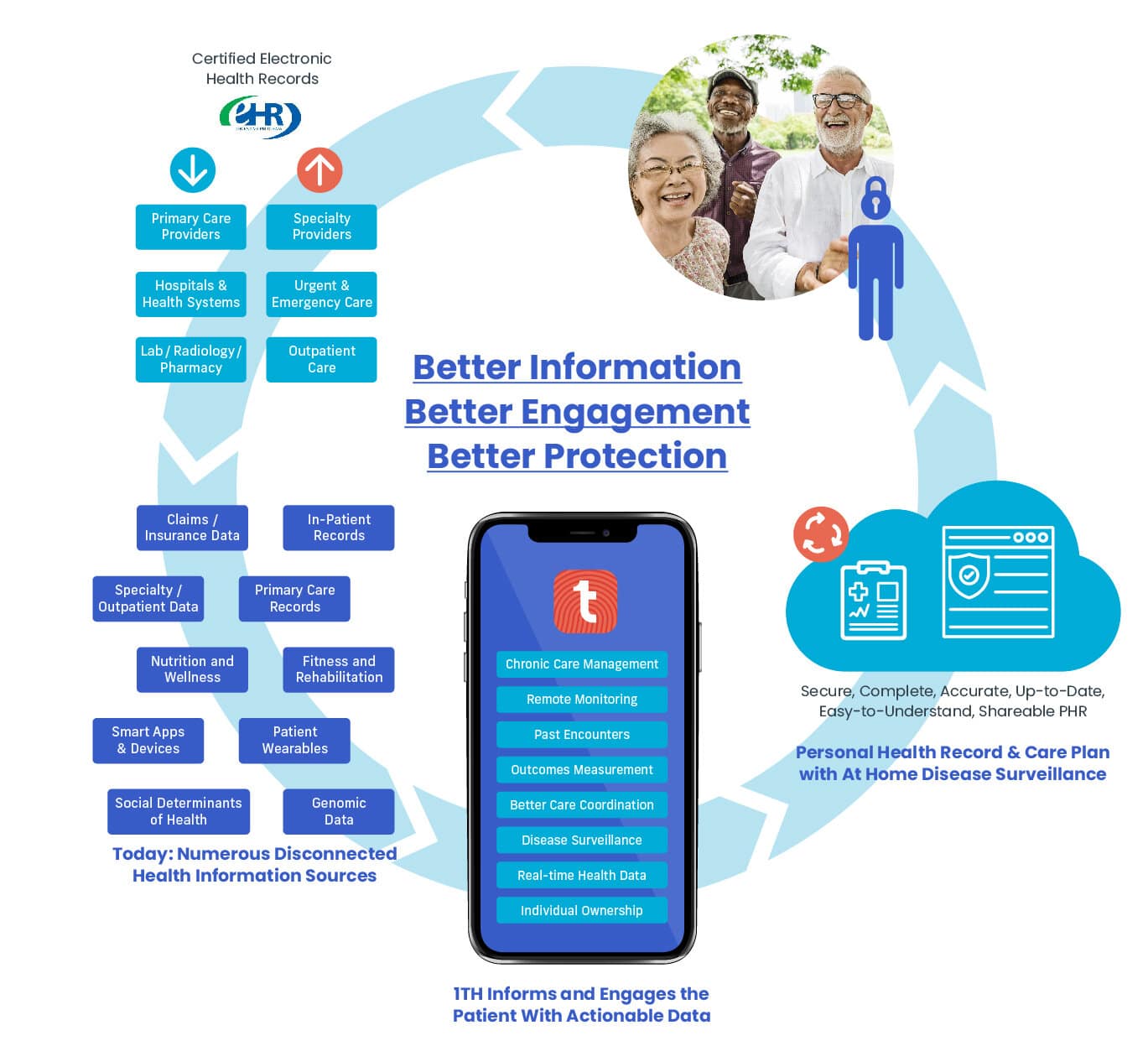 Relevant, easy to understand information will better engage the individual, motivate healthy behaviors, identify/protect from disease outbreaks, and produce quality data for population health and disease management.